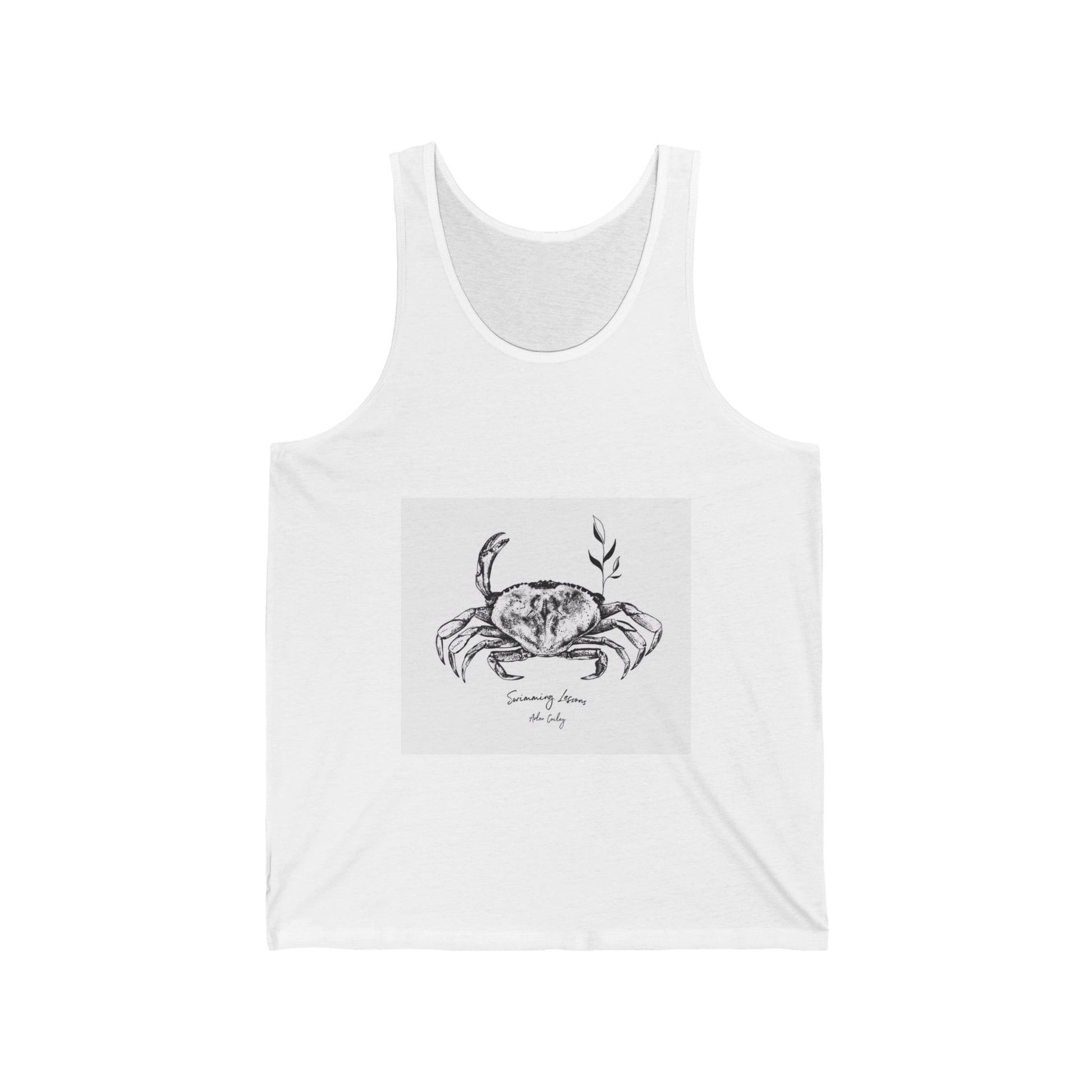 Crab Sketch Tank Top — Coastal Beachy Graphic Tank with 'summer, sandy, salty' Text
